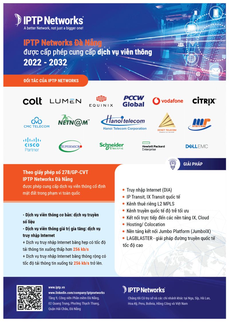 Tại IPTP Networks, chúng tôi cung cấp thành công các dịch vụ phù hợp với mong đợi và nhu cầu của khách hàng dựa trên các giá trị cốt lõi