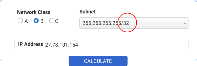 | 32 | 255.255.255.255 | 0 |