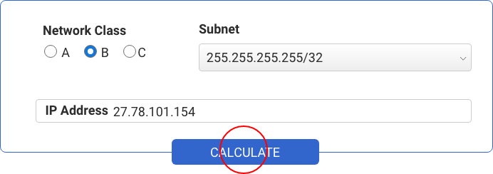 - Nhấn “Calculate” để tính toán giá trị mạng và IP.