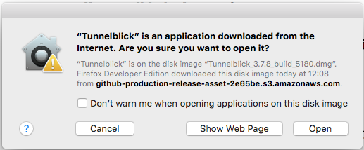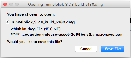 1. 前往tunnelblick.net 下载最新版本。 请注意,Tunnelblick 3.7 安装程序仅适用于Intel 处理器 MacOS 系统, 版本不低于 10.7.5 。