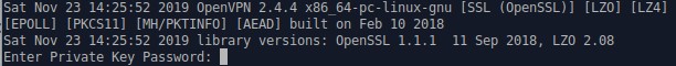 2.2) 在执行以上指令后,您需要输入私钥的密码。密码会随附在OpenVPN证书电邮中。