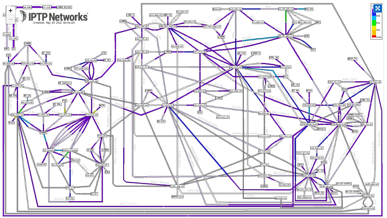 任何在电信领域的新手,当第一次看到这个实时网络动态图(Weathermap)时,可能会有一些困惑。因此,在下面的部分,IPTP网络将解释这个实时网络动态图的定义,它的好处,在地图上显示的细节,以及如何阅读和理解这个工具的完美。